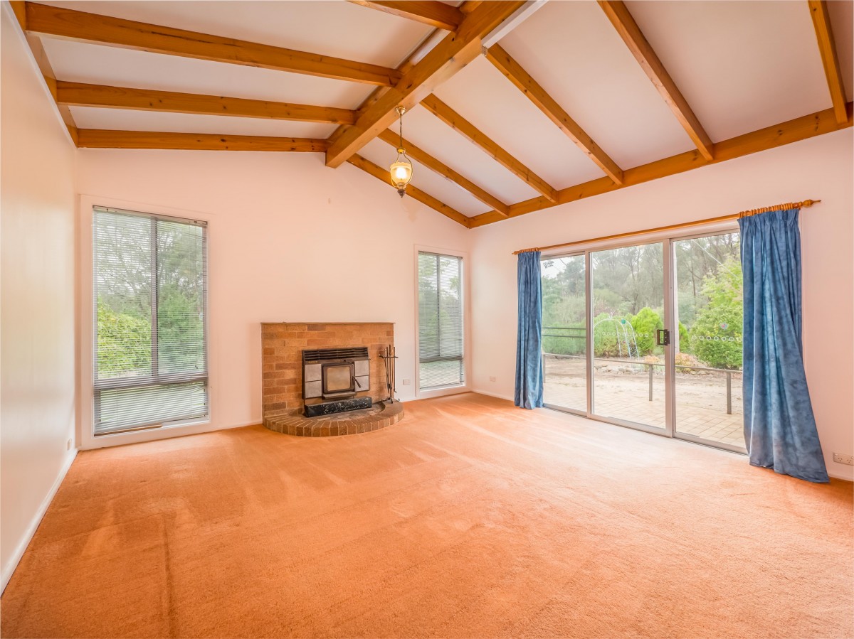 - Large split level living area as you enter the front door. This room has raked ceilings, light filled north facing windows, wood heating, plus ducted reverse cycle air conditioning through out.