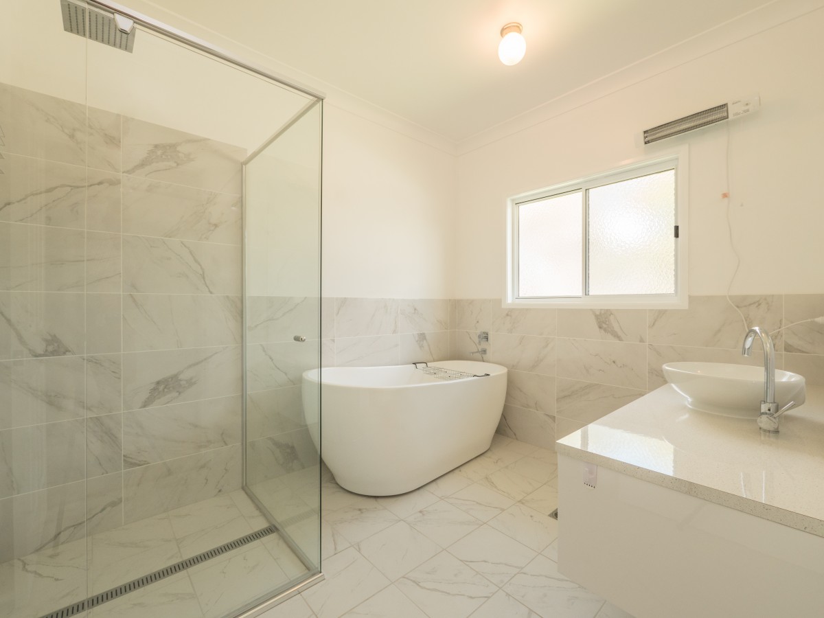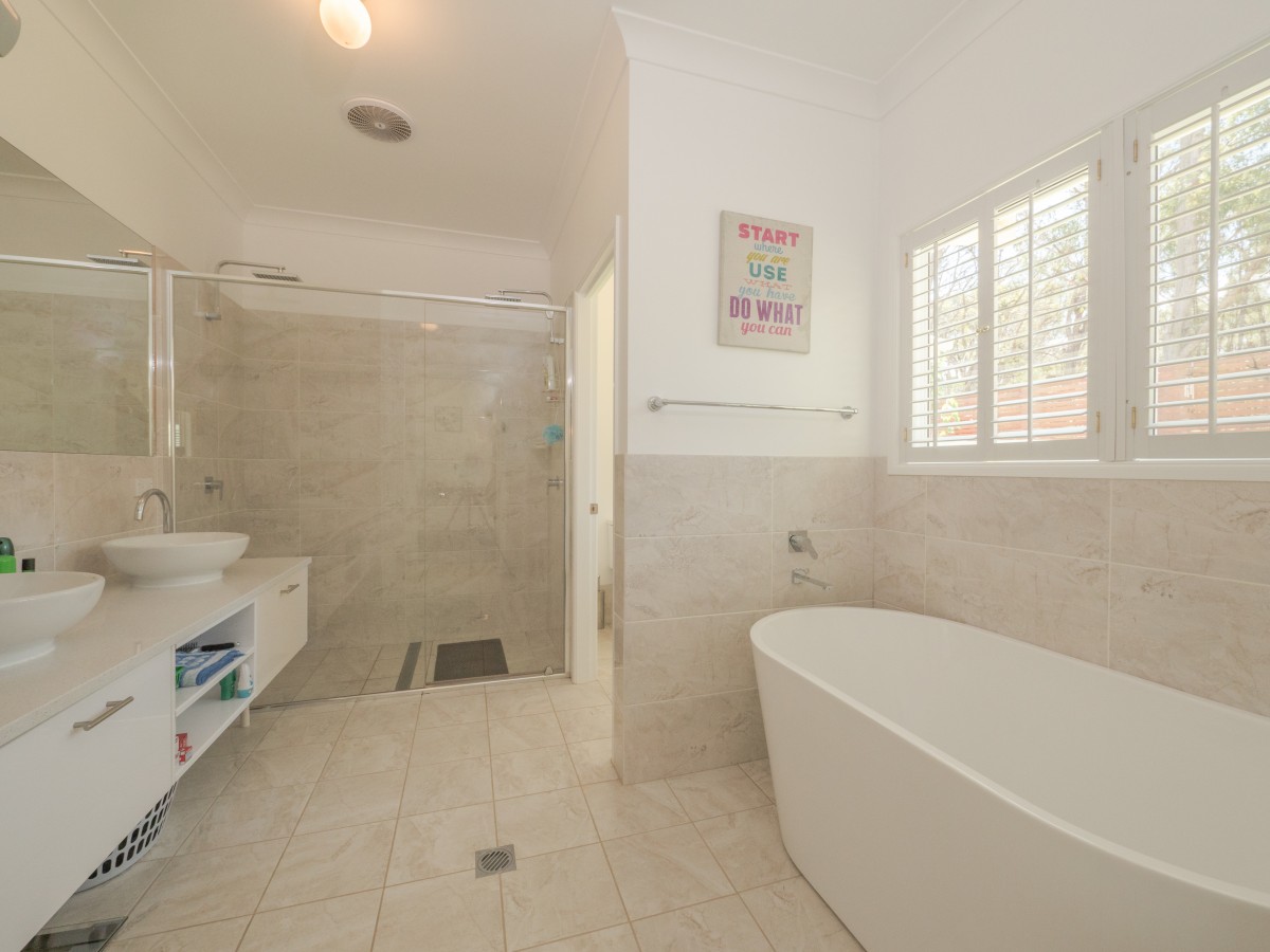 Main bedroom features walk in robe & elegant oversized ensuite with double shower, floating double vanity & free standing bath tub