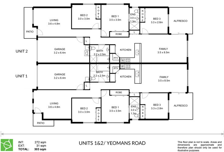 - 3 generous sized bedrooms, all with built in robes.