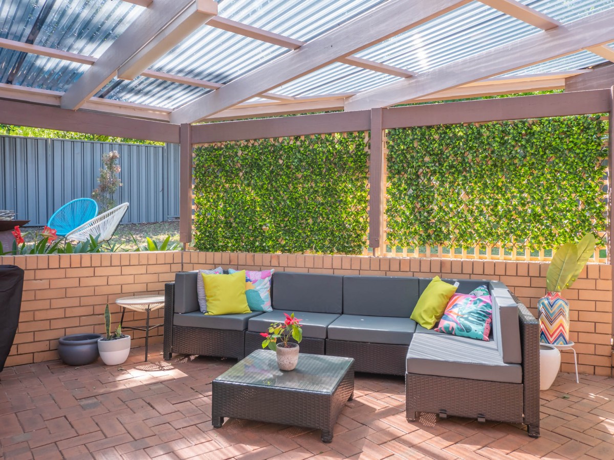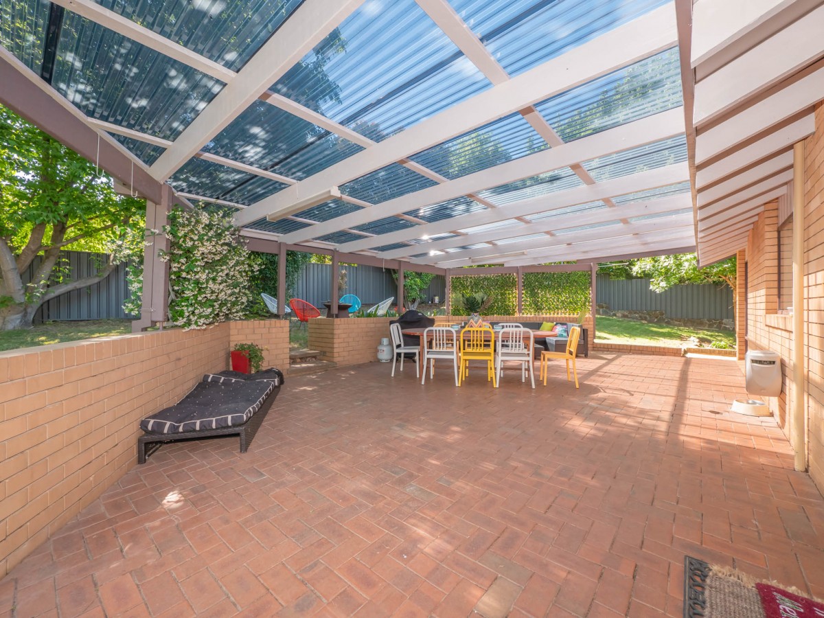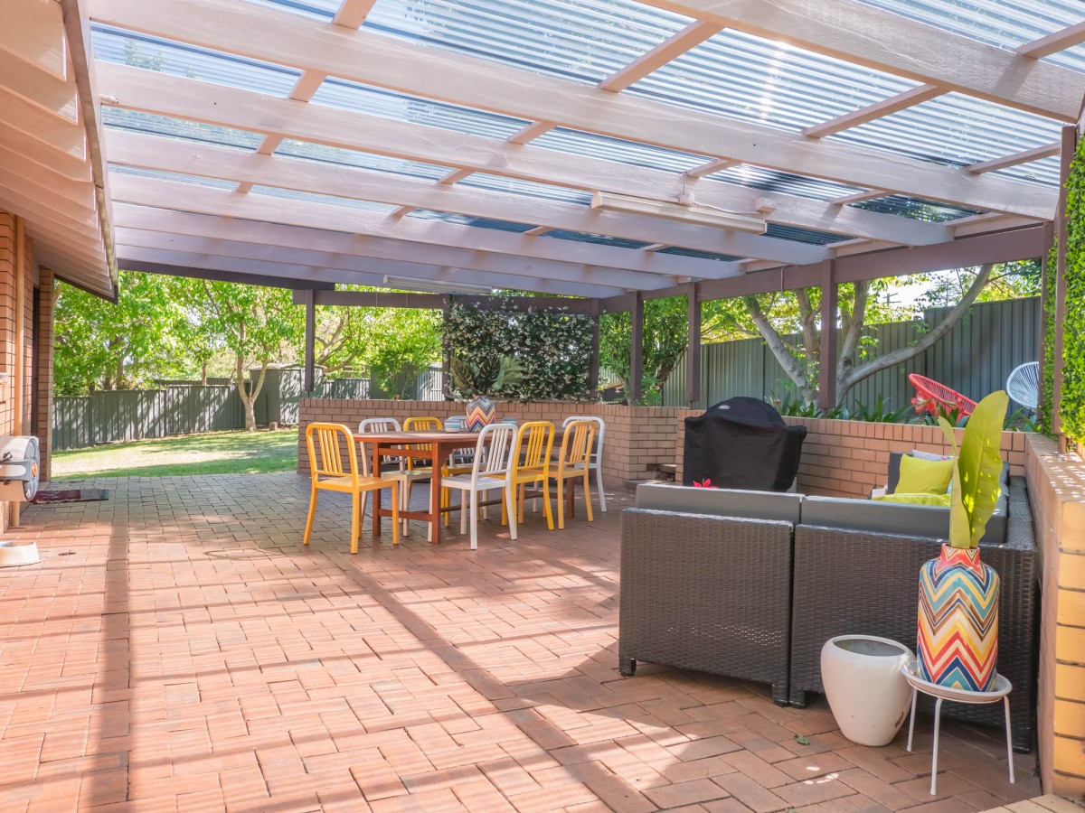 - Large fully fenced yard approximately 1208m2 with backyard access and 2 garden sheds