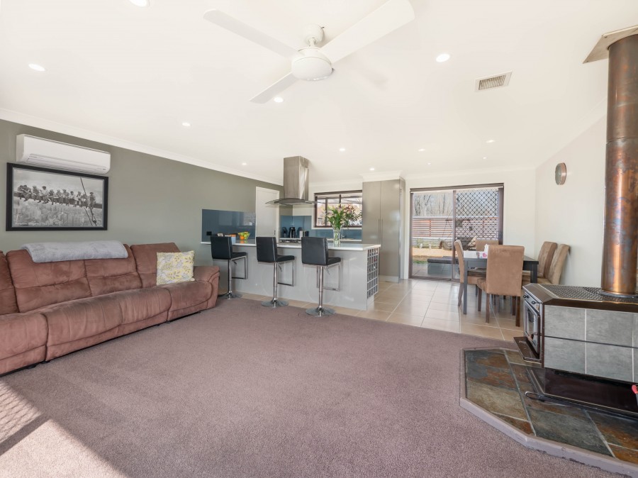 - Cosy wood heating, plus reverse cycle air in the living area, ducted to the media room.