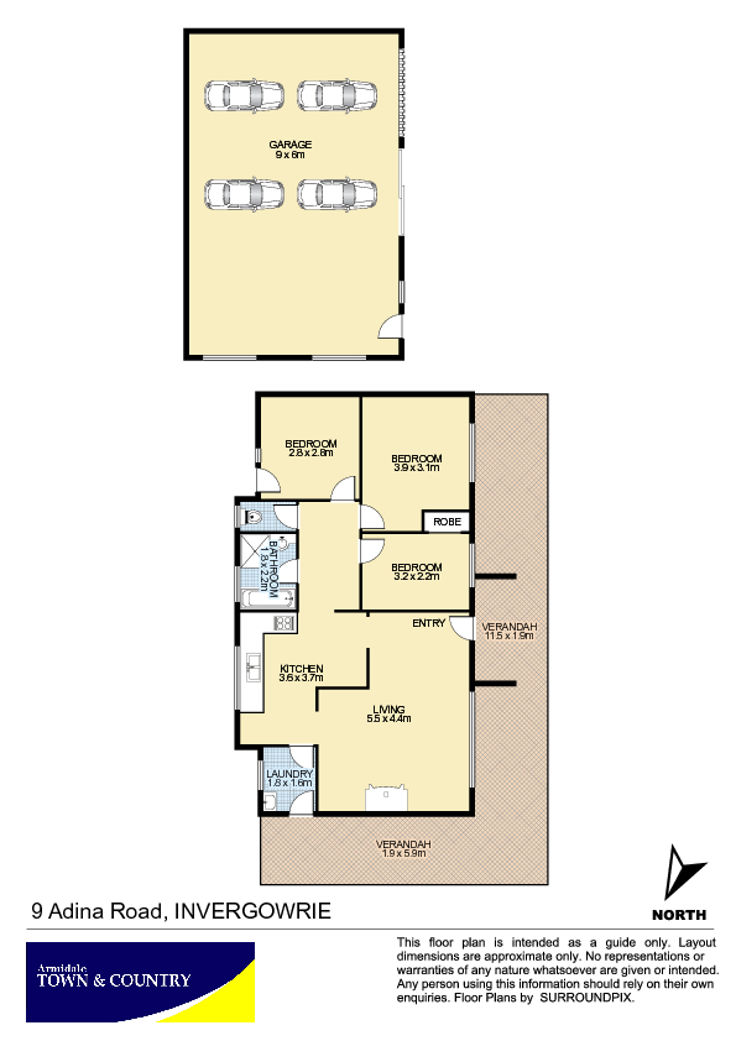 - Double lock up garage, 9mx6m, concrete floor, fully powered and studio with air conditioning.