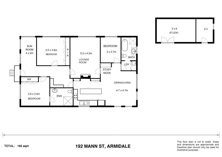 - Full fenced yard with detached studio