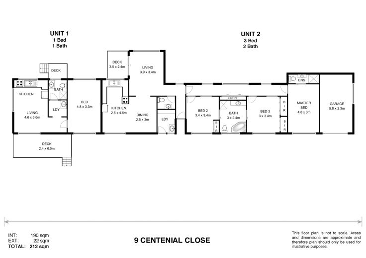 - Unit 2 with 3 bedrooms, main with ensuite.