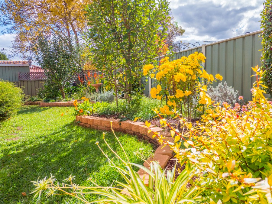 Fully fenced. Family friendly yard with established gardens, garden shed & courtyard area