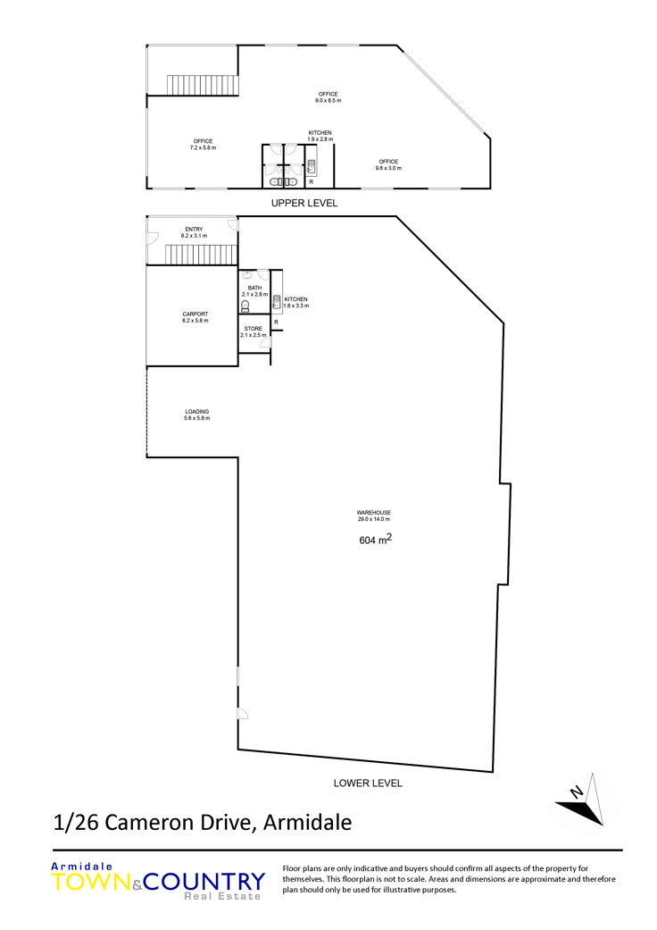 * 604m2 of warehouse space (8.5m to 10.7m apex clearance, approx)