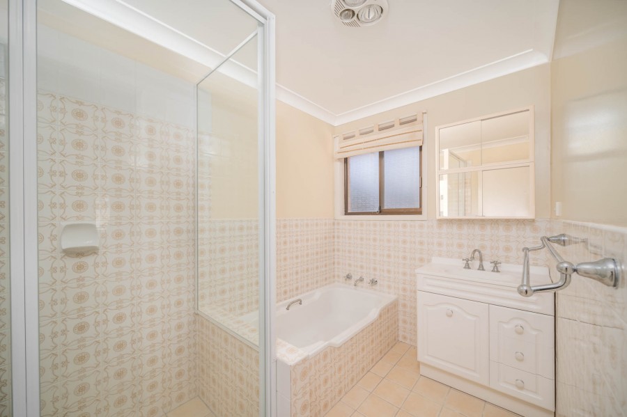 Main bathroom with bath and shower