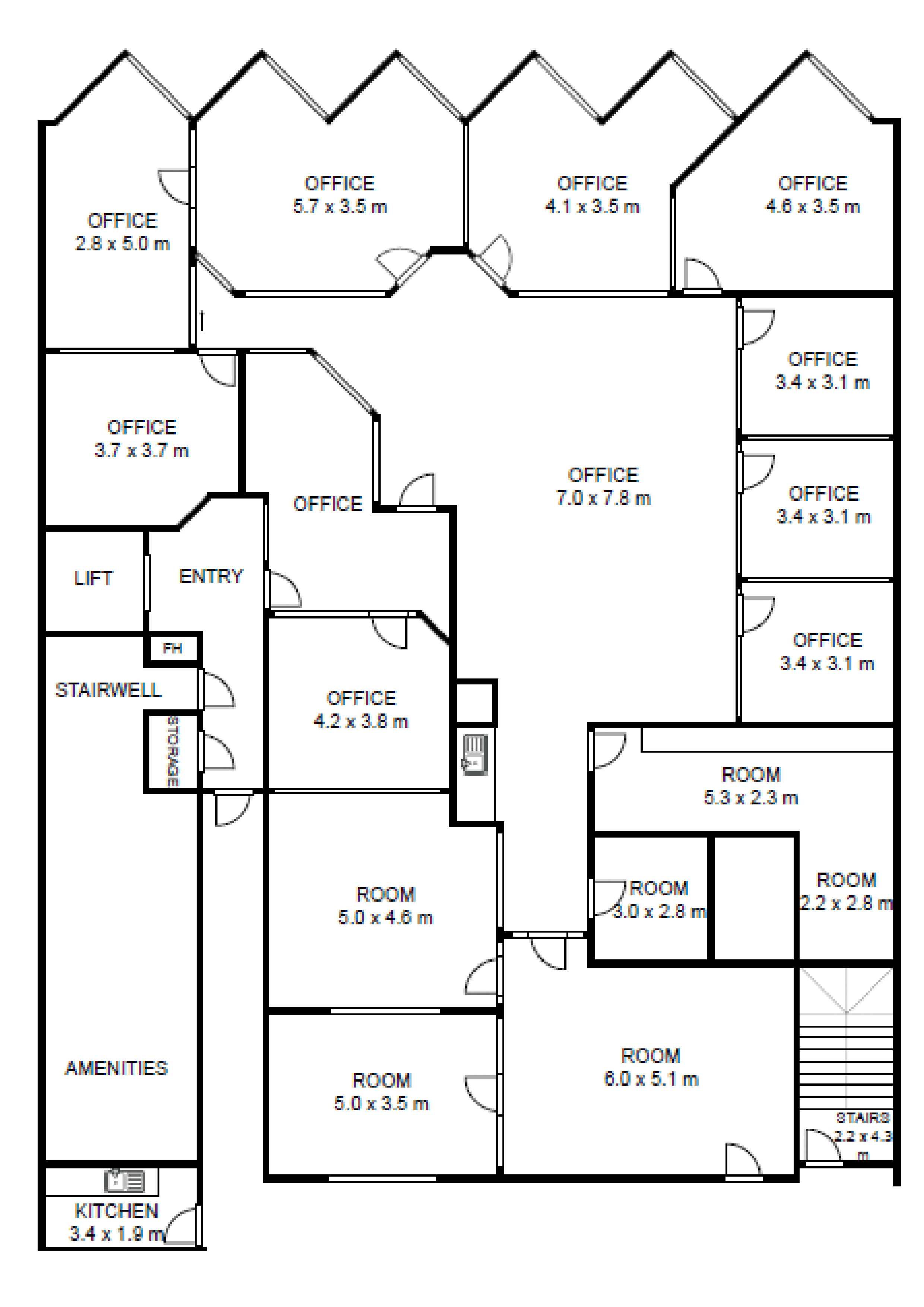 Located on the first level of a professional building, this office is currently fitted with a waiting area, 12 office / meeting room spaces, a communications room, open areas, kitchenette and meals room.